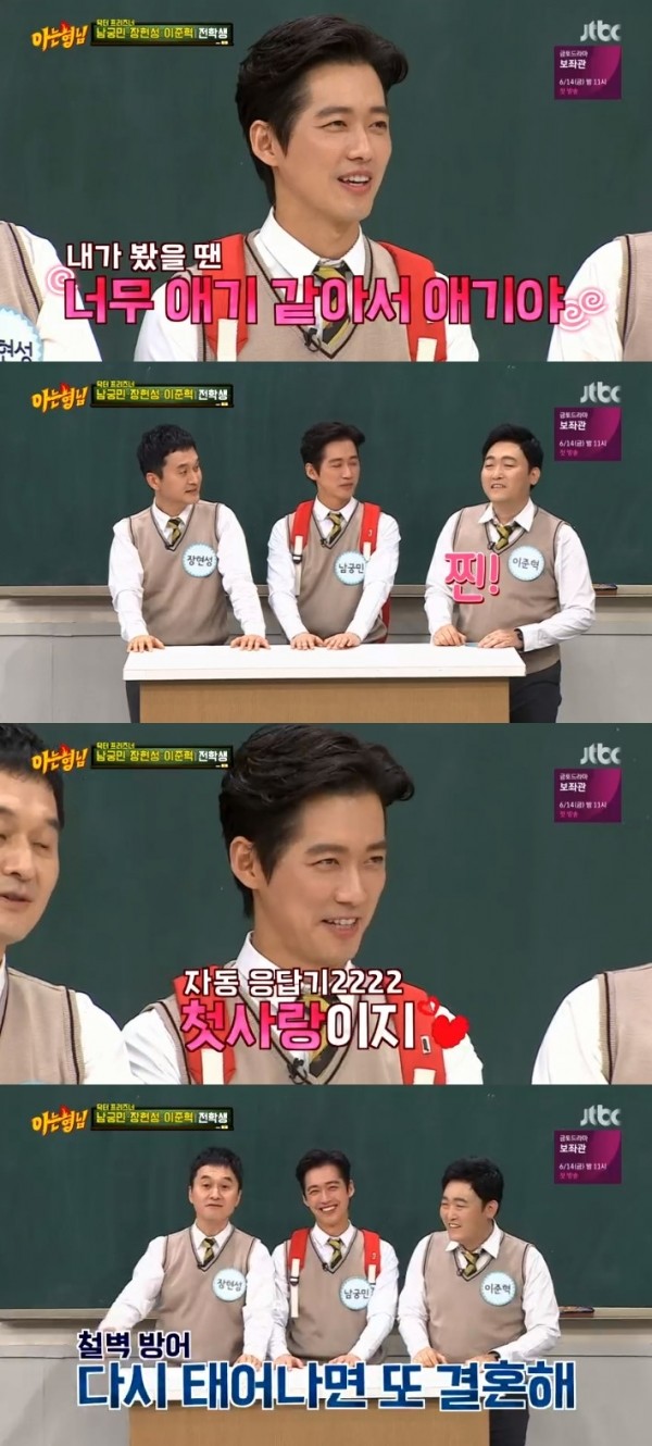 특히 그는 “첫사랑이냐”라는 질문에 “첫사랑은 아니다”라고 솔직하게 답했고, 이를 듣던 장현성과 남궁민은 “첫사랑이다. 다시 태어나면 또 결혼 할 것”이라고 상반된 답변으로 받아 쳐 웃음을 자아냈다.