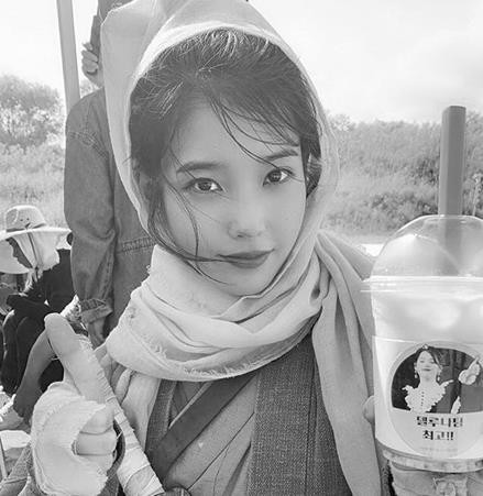 가수 겸 배우 아이유가 촬영장에서도 인형 미모를 뽐냈다.