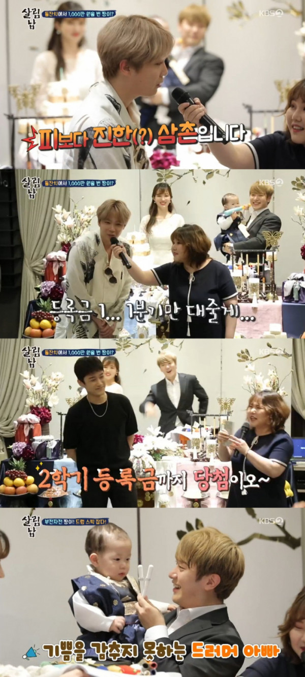 최근 방송된 KBS2 ‘살림하는 남자들2’에서는 율희-최민환 부부의 아들 재율의 돌잔치에 참석한 FT아일랜드의 멤버 이홍기, 이재진의 모습이 안방을 찾아갔다.