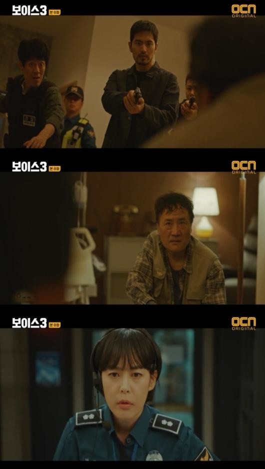 2일 방송된 케이블채널 OCN 수목드라마 '보이스 시즌3' 8회에서는 도강우(이진욱 분)의 정체에 충격을 받은 강권주(이하나 분)모습이 그려졌다. 이날 오진식(최승윤 분)을 잡으러 클럽으로 출동한 도강우는 강권주로부터 현장에 와이어슌이 있단 말을 들었다.