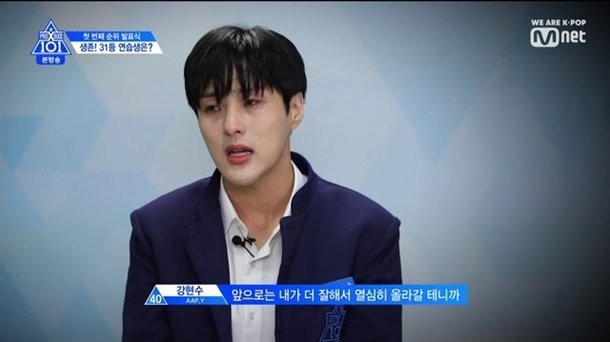 5월 31일 방송된 Mnet ‘프로듀스X101’에서는 첫 번째 순위 발표식이 공개됐다. 강현수는 40위에 이름을 올려 생존했다.
