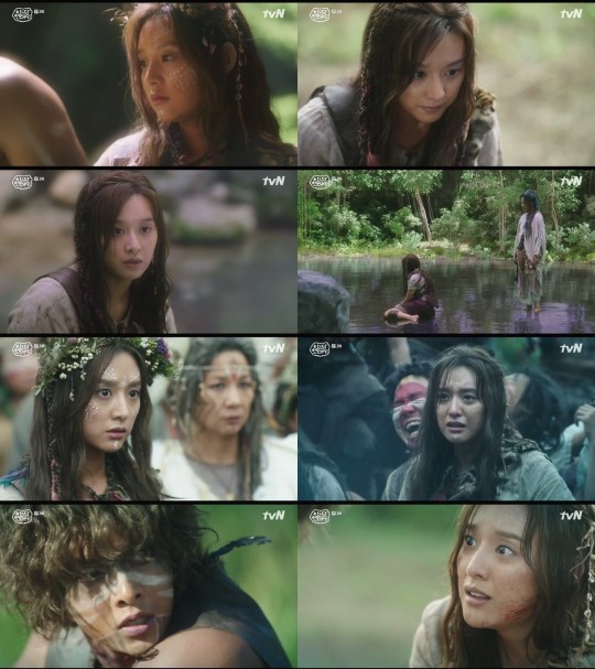 지난 2일 방송된 tvN 새 토일드라마 '아스달 연대기' 2회에서 김지원은 총명하고 씩씩한 와한족 소녀 탄야(김지원 분)로 처음 등장했다. 이날 극 초반 탄야는 꿈을 만나지 못하고 정령을 부르는 춤도 외우지 못해 좌절하며 주저앉았다.