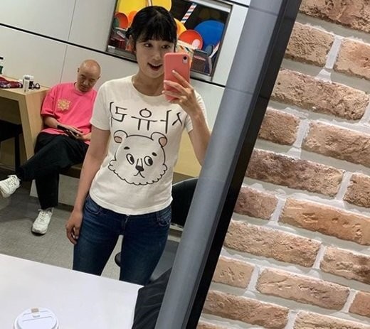 사유리는 1일 자신의 인스타그램에 "셀카 찍는데 뒤에서 미친 존재감. I see something shining in the back."이라는 문구와 함께 사진을 게재했다. 사진을 보면 사유리가 셀카를 찍는 와중에 뒷배경에 방송인 홍석천의 모습이 담겨 있다.