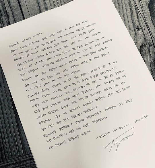 나라는 지난 4월 27일 자신의 인스타그램에 손편지로 장문의 글을 남겼다.