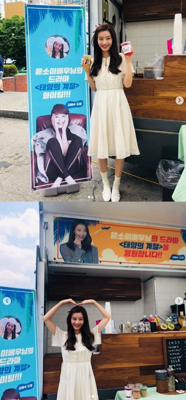 김혜수 역시 커피차에 "윤소이의 드라마 '태양의 계절'을 응원합니다"라고 적어 후배를 향한 애정을 드러냈다.