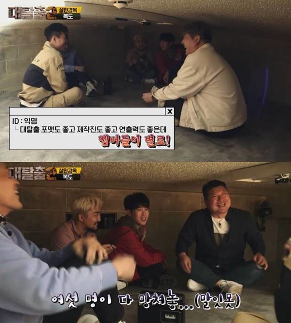 강호동은 "오전에 신동이 봤다는 댓글이 찝찝하다. 그걸 제작진이 본 것 같다"며 "댓글에서 '대탈출'이 포맷도 좋고 제작진, 연출력 다 좋은데 멤버들이 별로라고. 우리 6명이 다 망쳐놓는다고 했다더라"고 말했다.