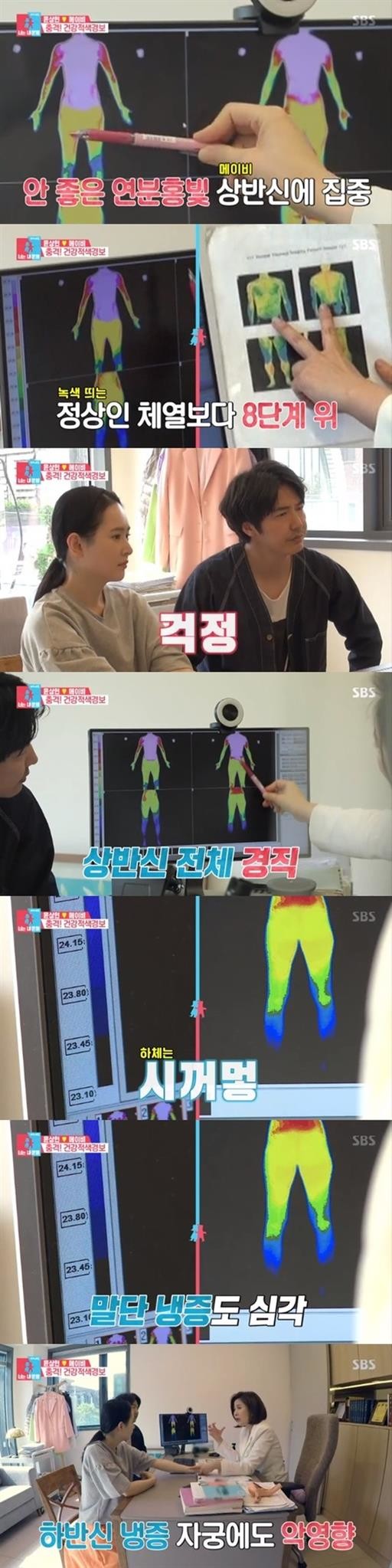 메이비의 열분포 사진은 한눈에 보기에도 안 좋아 보였고, 한의사는 정상인 보다 8단계 위 정도로 냉하다며 걱정했다. 한의사는 “산후조리 전 무리하면 자궁에 어혈이라고 하는 독소가 많이 생기고 피로감도 많이 느끼고 살짝 부딪치기만 해도 멍도 잘 든다. 산후풍 예방하고 자궁을 따뜻하게 해주는 게 너무 중요하다”고 강조했다.