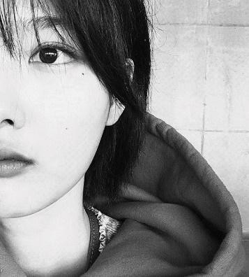 김유정은 사진 속에서 단발머리에 얼굴을 반만 드러내고 진지한 표정을 지었다.