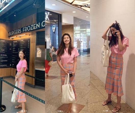 사진 속에서 김빈우는 머메이드 라인의 스커트를 입고 에스(S)라인 몸매를 뽐내고 있다.