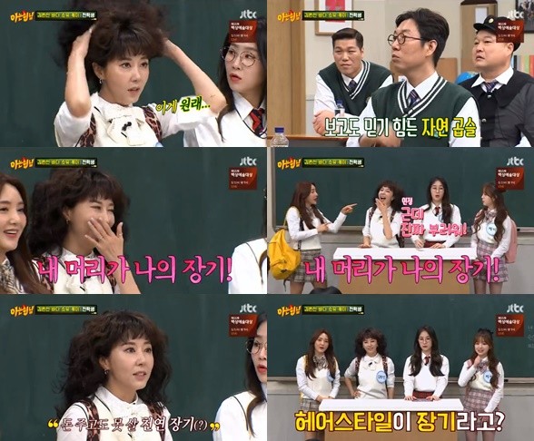 ‘원조 댄싱퀸’ 김완선은 이날 일명 ‘사자머리’를 하고 형님들 앞에 섰다. 이수근이 “파마한거지?”라고 하자 김완선은 “이거 진짜 내 머리야”라고 해 형님들을 놀라게 했다.