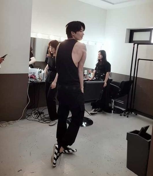공개된 사진 속 송재림은 대기실에서 등근육을 뽐내고 있는 중이다. 민소매 사이로 도드라져 보이는 등근육이 눈길을 사로잡는다.