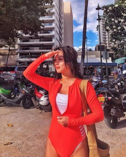 공개된 사진 속 김희정은 하와이 와이키키 해변을 거닐고 있는 모습이다. 김희정은 빨간색 수영복을 입은 채 포즈를 취하고 있는데, 섹시한 자태가 눈길을 사로잡는다.