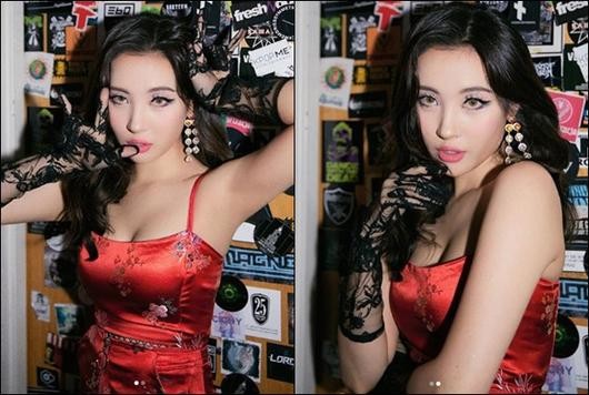 사진 속 선미는 원더걸스 시절이 생각나게 만드는 빨간 의상과 장갑으로 섹시함을 한껏 표현해냈다. 특히 고양이를 연상시키는 메이크업이 인상적이다.