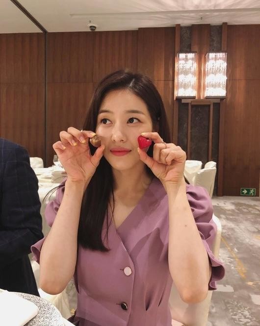 공개된 사진 속 박하나는 하트무늬 초콜릿을 손에 들고 사랑스러운 매력을 더하는 모습이다.