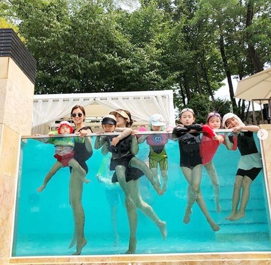 공개된 사진 속 김성은은 박지윤과 함께 아이들과 수영장에서 시간을 보내고 있는 모습이다.