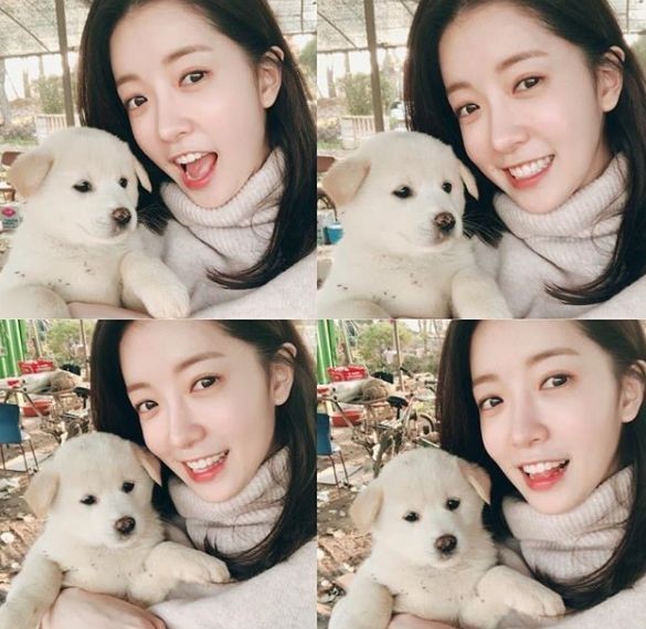 공개 된 사진 속에는 정인선이 강아지와 교감하고 있는 모습이다.