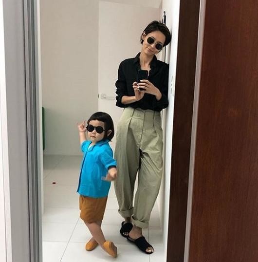공개된 사진에는 아들 신우 군과 유쾌하게 사진을 찍고 있는 김나영의 모습이 담겨있다.