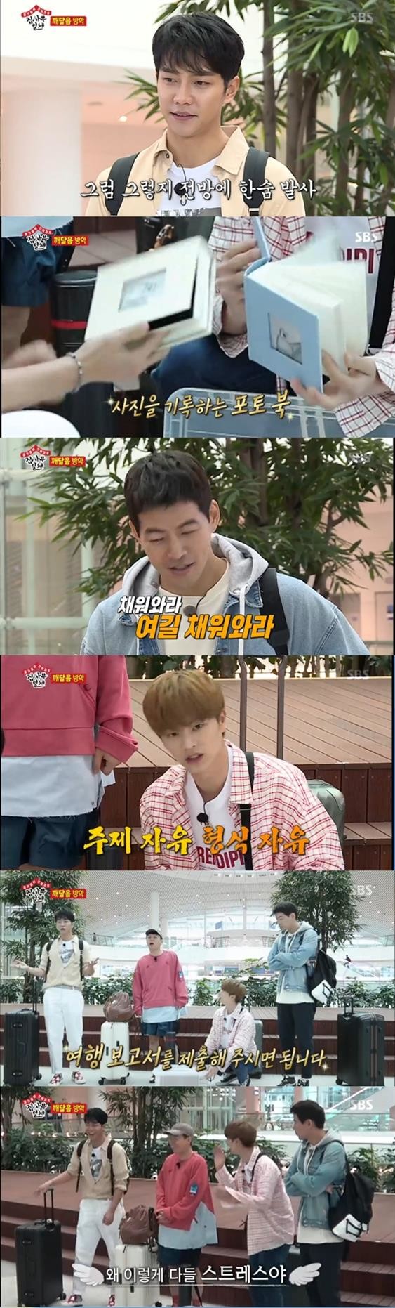제작진이 건낸 상자에는 포토북부터, 기록장까지 여행의 일과를 기록할 수 있는 물건들이 많이 담겨있었다. 멤버들은 제작진이 건낸 상자를 보고 "보고서를 제출하는 것이 어떻게 자유여행이냐"며 투덜댔다.