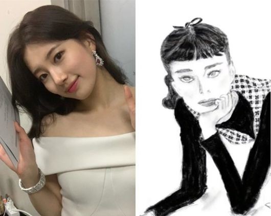 4일 수지는 자신의 인스타그램을 통해 "#audreyhepburn #그림스타그램"라는 글과 함께 동영상을 올렸다.