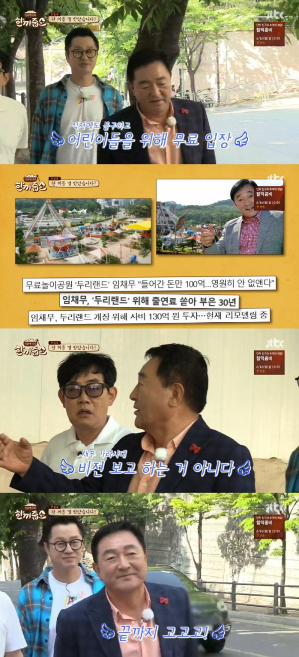 임채무는 과거 예능에 출연해 놀이동산을 만든 이유에 대해 “아이들을 좋아해서”라고 밝혔다. 그러면서 무료입장을 고집하는 것에 대해 “젊은 부부가 입장료를 못 내는 걸 보고 없애게 됐다”라고 말해 훈훈함을 안겼다.