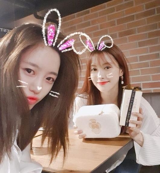 공개된 사진 속 박규리와 함은정은 한 카페에 마주 보고 앉아 카메라를 바라보고 있다. 두 사람은 카메라 애플리케이션으로 토끼 모양 이모티콘을 더해 귀여운 매력을 보이고 있다.
