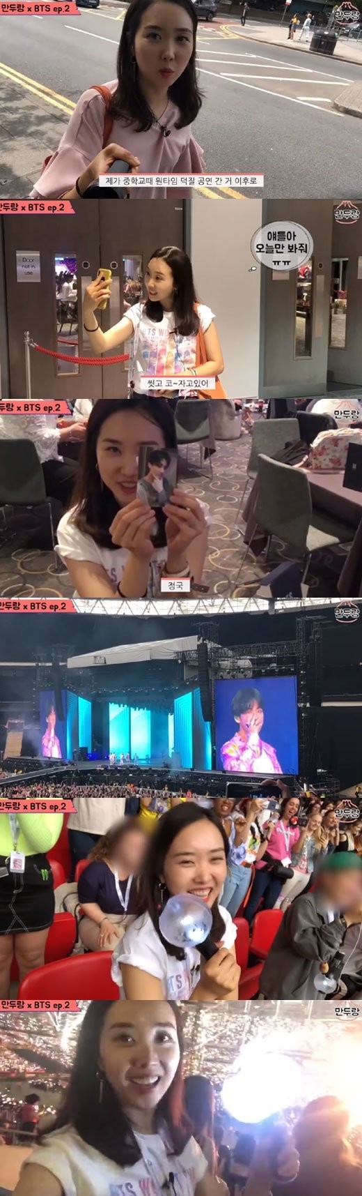 김민지는 지난 3일 자신의 유튜브 채널 '만두랑'에 "할미와 BTS -2탄- 웸블리 입성 실화냐"라는 제목으로 영상을 게재했다.