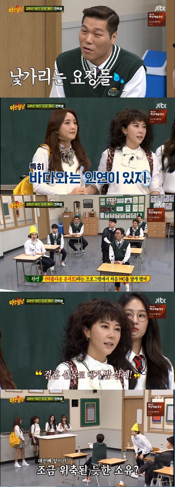 이에 김완선은 수긍을 하면서도 "바다와는 인연이 있다"고 말했다. 그녀는 "전에 '아름다운 콘서트'에서 나를 위해 선뜻 MC를 봐줬다"며 "그게 고마워서 결혼하며 밥 사주기로 했는데 아직까지 못사줬다"고 미안함을 전했다.