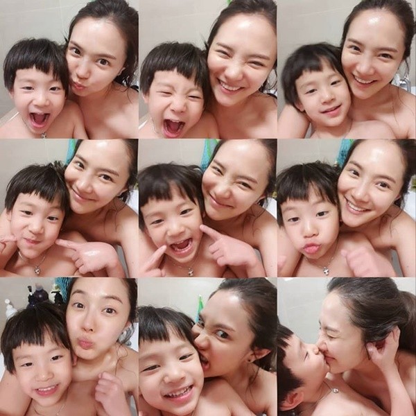 야구선수 이용규의 아내이자 배우인 유하나가 아들과 함께 찍은 셀피가 회자되고 있다.