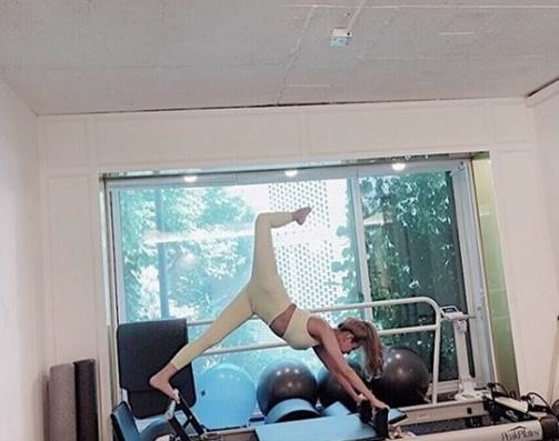공개된 사진 속 유빈은 고난이도 필라테스 동작을 완벽하게 소화하고 있다.