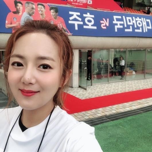7일 배우 강은비는 자신의 인스타그램에 "#강은비 #대한민국 #호주 #축구 사회공헌프로그램 ‘베스트11 희망 하이파이브’"라는 글과 함께 두 장의 사진을 게재했다.
