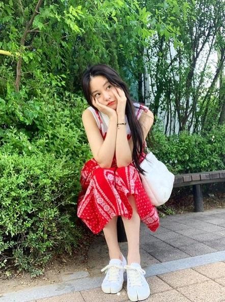 공개된 사진 속 이주연은 붉은색 원피스를 입고 청량한 미모를 뽐내고 있다.