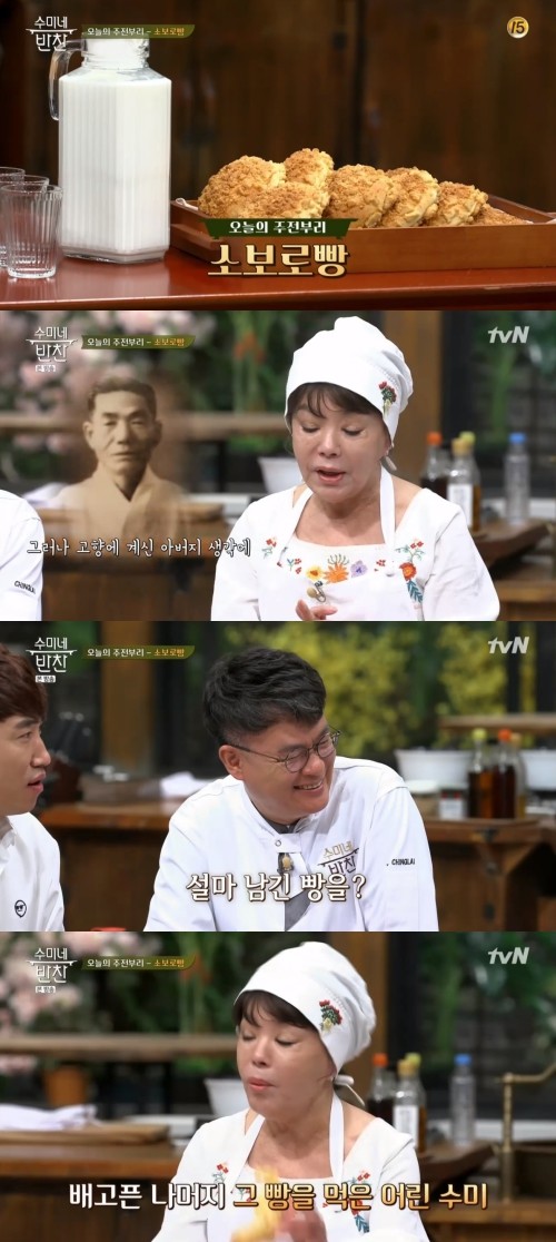 이날 김수미는 주전부리로 등장한 소보로빵에 "이 빵에 대한 추억이 너무 가슴 아프다"고 말했다.