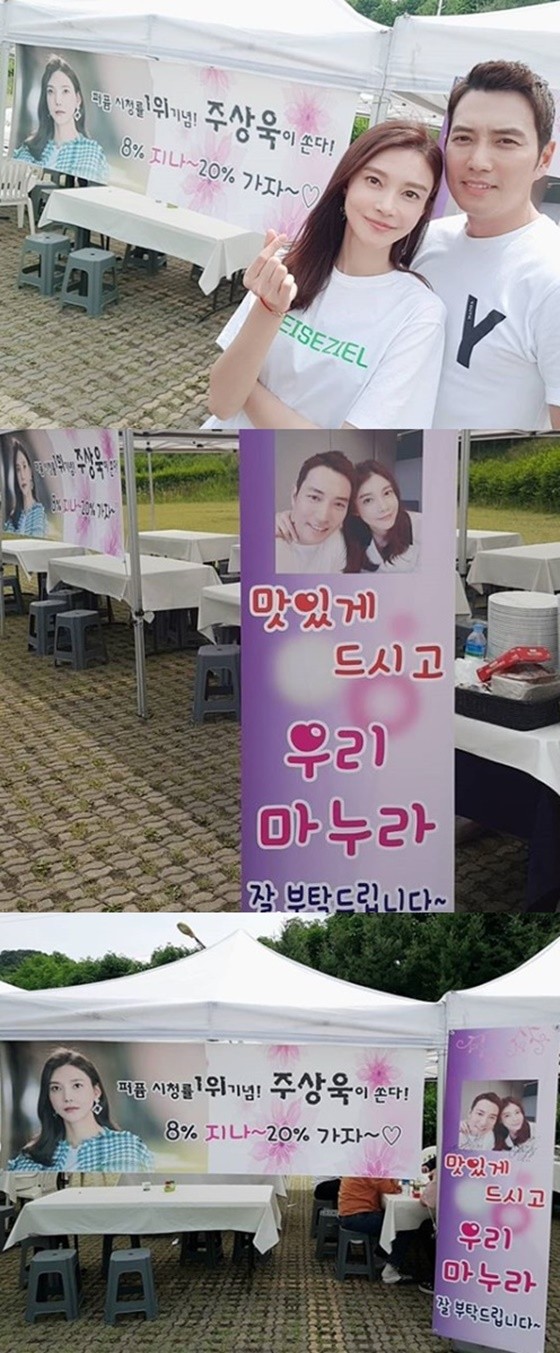 사진 속 차예련은 주상욱과 하얀색 티를 맞춰 입은 채 손가락 하트를 날리고 있는 모습으로 훈훈함을 자아냈다.