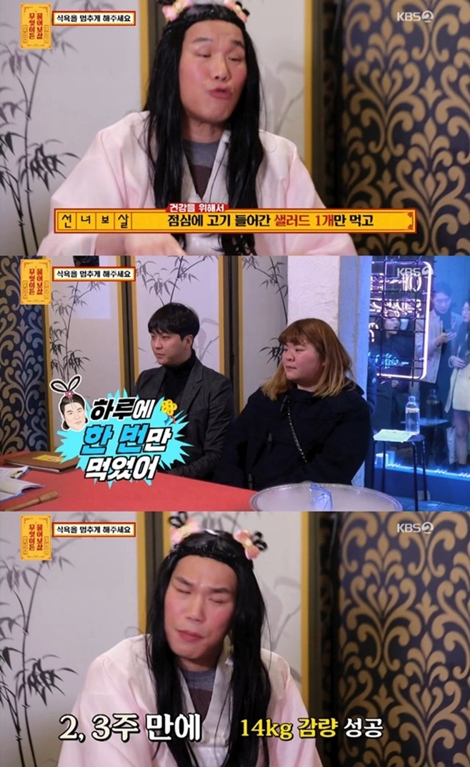 이어 서장훈은 "그래서 2주 동안 점심 시간에 고기가 들어간 샐러드 하나만 먹고 하루 종일 버텼다"며 "3주가 지나니까 14kg이 빠졌더라"고 말해 놀라움을 자아냈다.