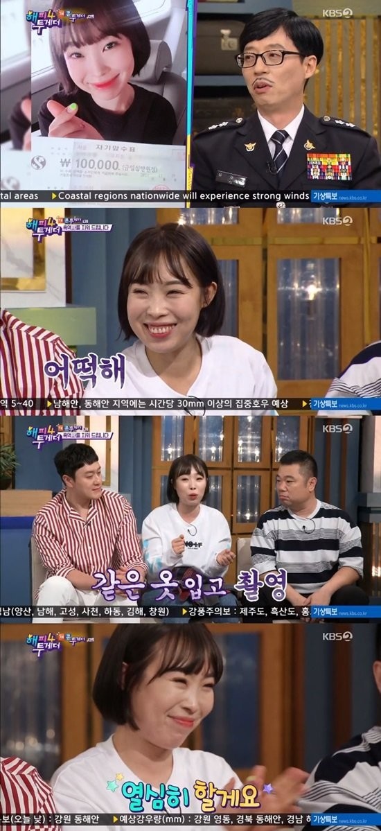 최근 방송된 KBS 2TV '해피투게더4'에는 개콘 1000회를 빛낸 개그맨들이 출동한 가운데 개그우먼 오나미가 화려한 입담을 과시했다.