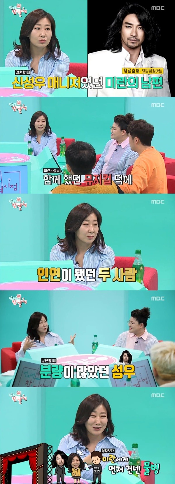 이날 라미란은 결혼 전에 남편이 신성우 매니저를 했었다고 밝혔다. 라미란은 신성우와 함께 했던 뮤지컬로 인해 인연이 되었다고 전했다.