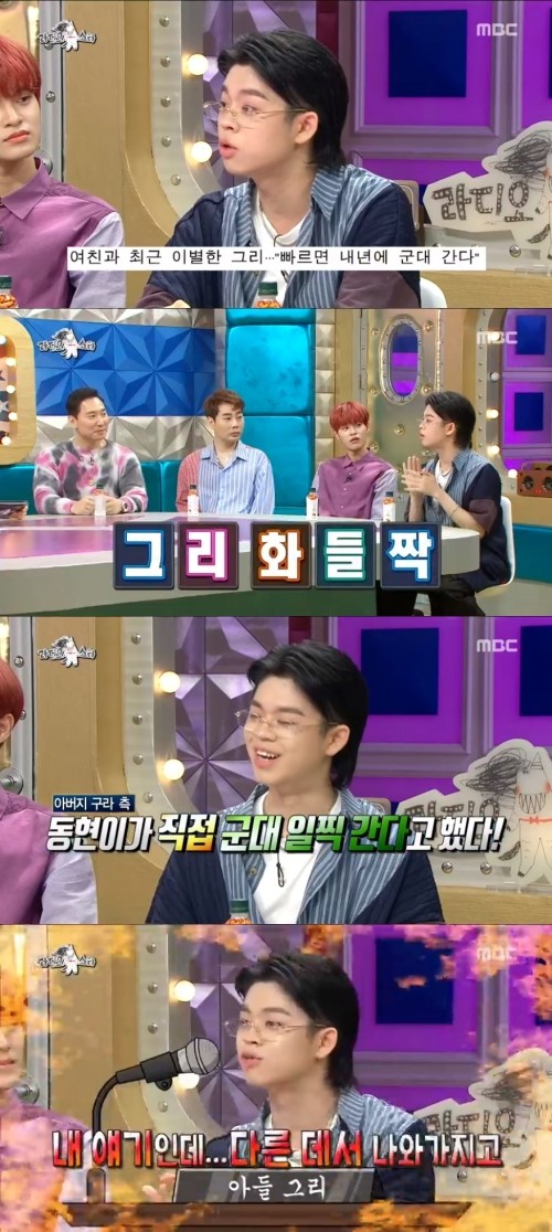 이날 그리는 "저는 군대 발언 하지도 않았는데 내년에 군대 간다는 기사가 떴었다. 알고 보니까 아빠가 그리 내년에 군대 갈 겁니다, 했던 거다"라며 김구라를 저격했다.