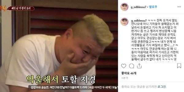 그는 "나는 억울하다. 네티즌의 관심을 받고 싶어서 사진을 올리는 것이 아니다. 내가 나의 SNS를 운영하겠다는데 왜 여러분들의 눈치를 봐야 하는지 이해가 되지 않는다"라며 솔직한 속마음을 드러내 눈길을 끌었다.