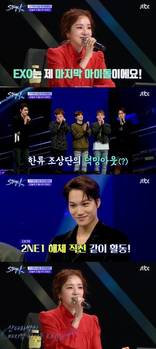 산다라박은 엑소의 등장에 "엑쇼는 제 마지막 아이돌이다. 투애니원이 해체 직전에 엑소와함꼐 활동을 했다. 때문에 엑소 이후의 아이돌은 잘 모른다"고 애정을 보였다.