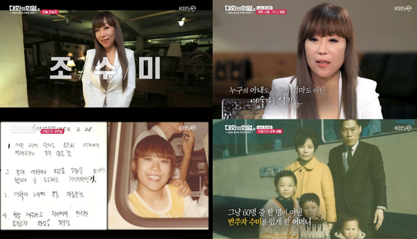 어머니의 뒷모습이 문득 가련하고 불쌍하다고 느낀 순간 조수미는 “저분이 못 이룬 걸 내가 해드려야겠다”라며 노래를 자신의 꿈으로 받아들이게 됐다고 고백했다.