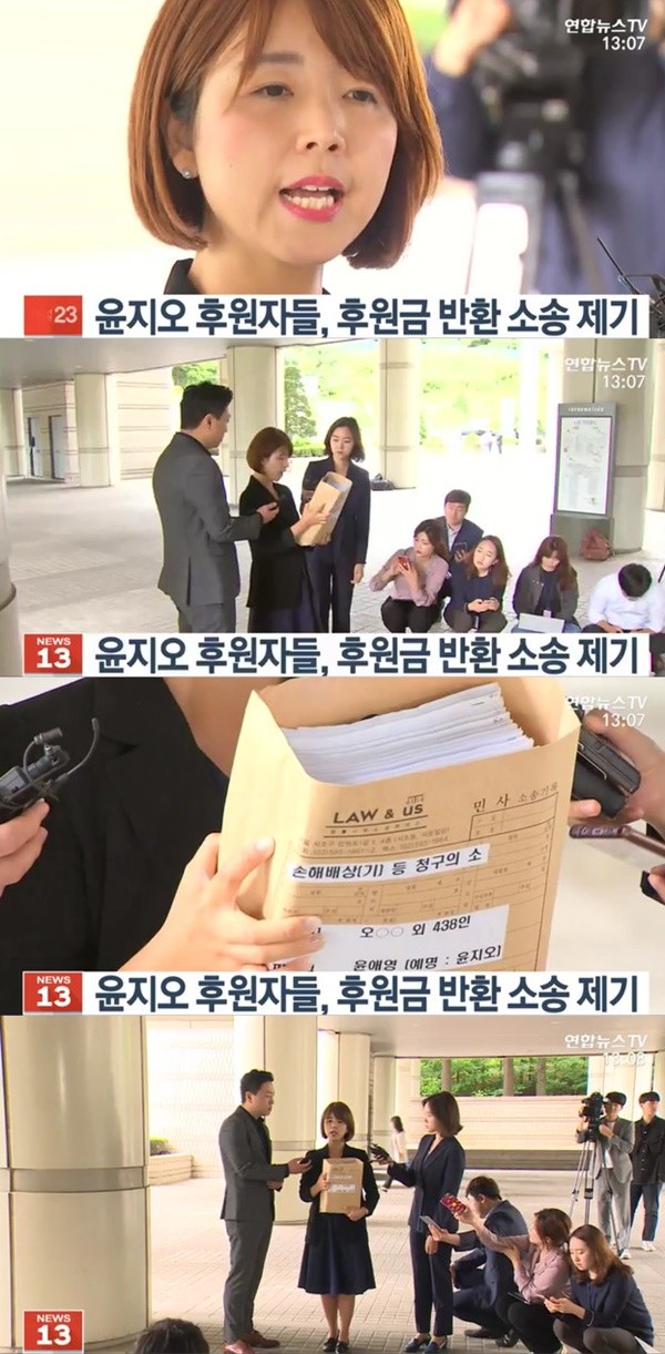 지난 6월 10일 방송된 연합뉴스TV '뉴스13'에서는 "故 장자연 사건의 유일한 증인이라고 자처한 배우 윤지오에게 후원금을 지원했던 후원자들이 '후원금 반환 소송'을 제기했다고 알렸다.