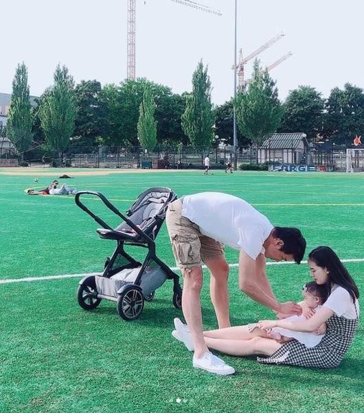 공개된 사진 속에는 푸른 잔디에 앉아 행복한 일상을 즐기고 있는 혜박과 남편, 딸의 모습이 담겼다. 혜박을 쏙 빼닮은 사랑스러운 딸의 모습이 특히 미소를 안긴다.