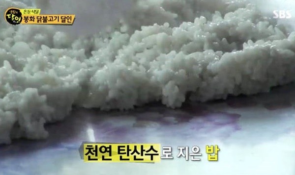 봉화닭불고기 달인은 “철분이 많이 함유된 천연 탄산수”라고 소개했다. 이 밥을 주걱으로 퍼 쟁반에 눌러 말린 뒤 닭숙성을 한다고 밝혔다.