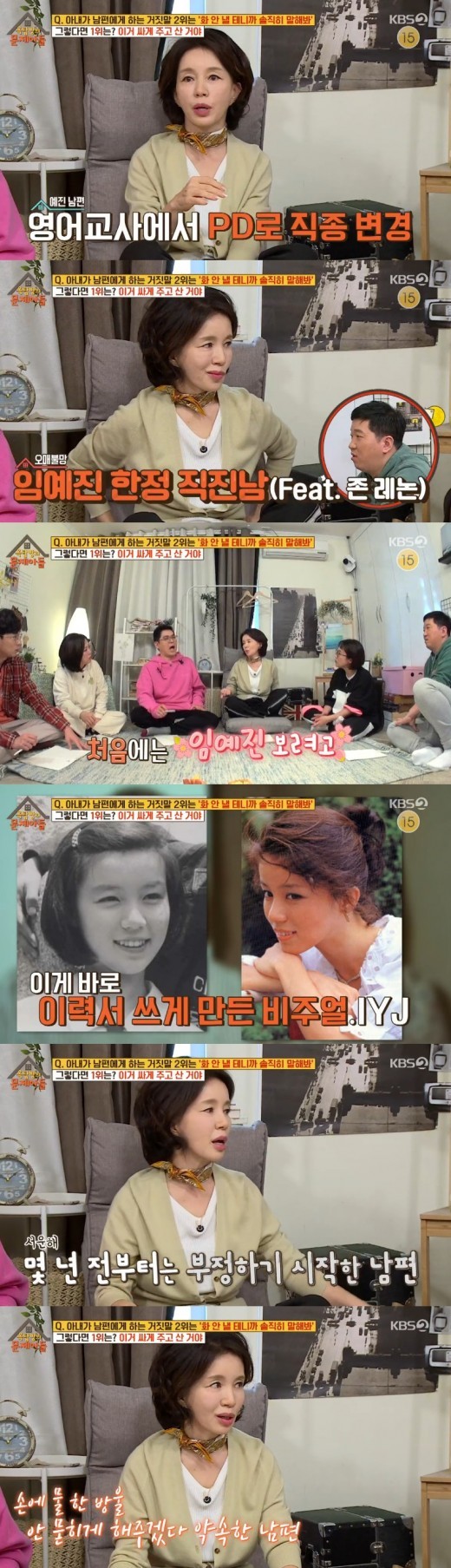임예진의 남편은 임예진의 오랜 팬이다. 임예진은 “남편이 영어교사를 하다가 방송국에 입사했다. 처음엔 날 보려고 방송국에 들어왔다고 했다. 그런데 몇 년 전부터 ‘그냥 해본 소리지’ 하면서 부정하더라”며 웃었다.
