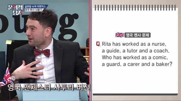다니엘 튜더는 지난 1월 tvN 예능프로그램 ‘뇌섹시대-문제적 남자’에 ‘IQ 177 영국 뇌섹남’으로 출연하기도 했다. 당시 다니엘 튜더는 영국 멘사 문제를 영국식 맨체스터 발음으로 발음하기도 했고 청와대에서 받은 시계를 보여주기도 하며 주목받았다.