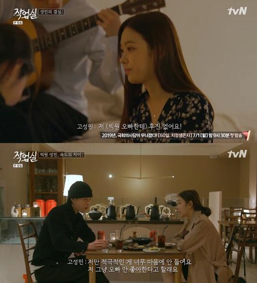 12일 방송된 tvN '작업실'에는 빅원과 차희가 데이트를 즐기며, 서로의 마음을 확인하는 모습이 그려졌다. 지난 방송에서 남태현에게 바람을 맞은 고성민은 차희와 빅원이 함께 있는 부엌으로 갔다.