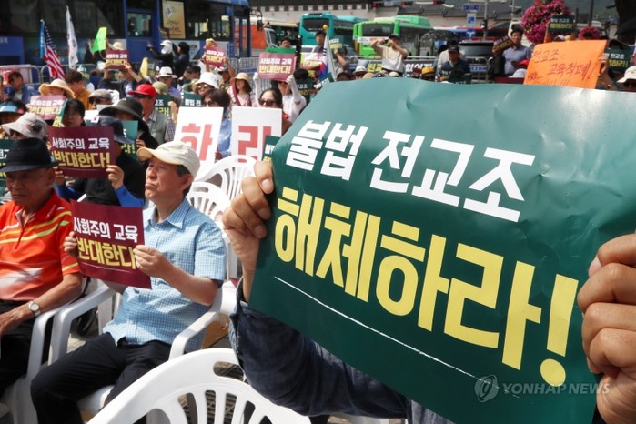 전교조는 법외노조라고 대법원 판결까지 받았다. 그럼에도 불구하고 국고 보조금을 돌려주지 않고 있으며 결과에 불복하고 자신들 이권을 위한 투쟁을 일삼는 것이 말이 되는가?