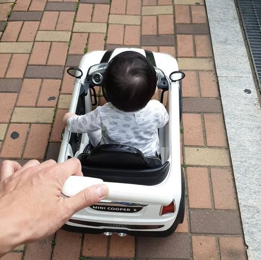 사진 속에는 아기 전용 자동차를 타고 있는 장승조 아들의 뒷모습이 담겨 있다. 동글동글한 머리와 깜찍한 뒤태가 사랑스럽다.