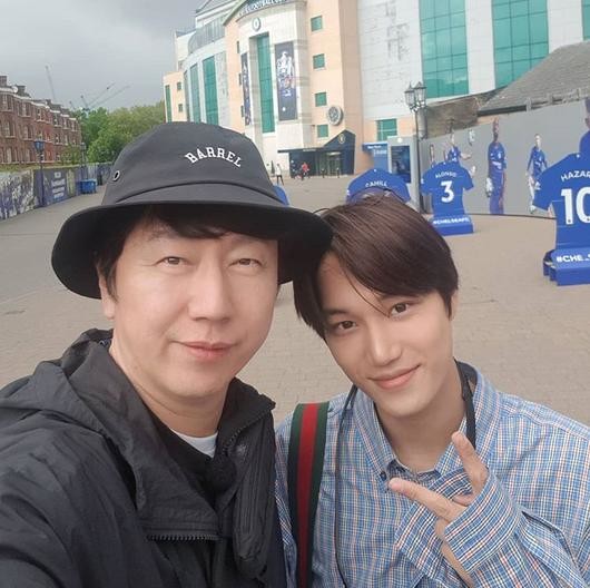 사진 속에는 카메라를 응시하며 다정한 포즈를 취하는 김수로와 카이의 모습이 담겨 있다. 훈훈한 분위기가 눈길을 끈다.