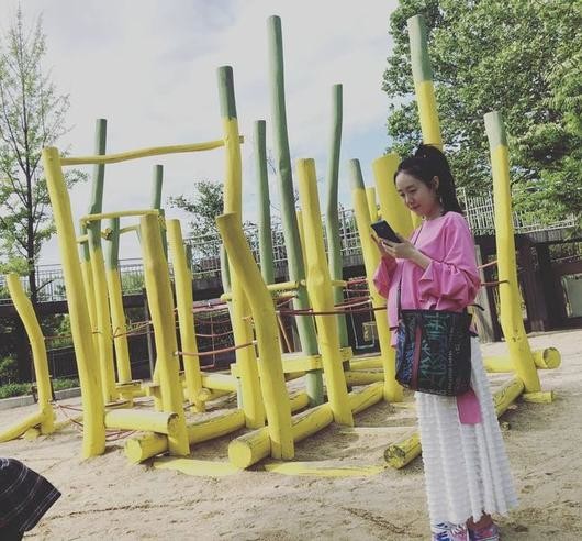 공개된 사진 속 별은 두 아들을 위해 놀이터를 찾았다. 분홍색 맨투맨에 흰색 스커트를 착용한 별은 아름다운 D라인을 자랑하고 있다.